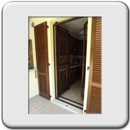 La particolare cerniera a bilico brevettata consente la fluida e totale apertura esterna e interna delle singole ante, agevolando la movimentazione delle persiane.